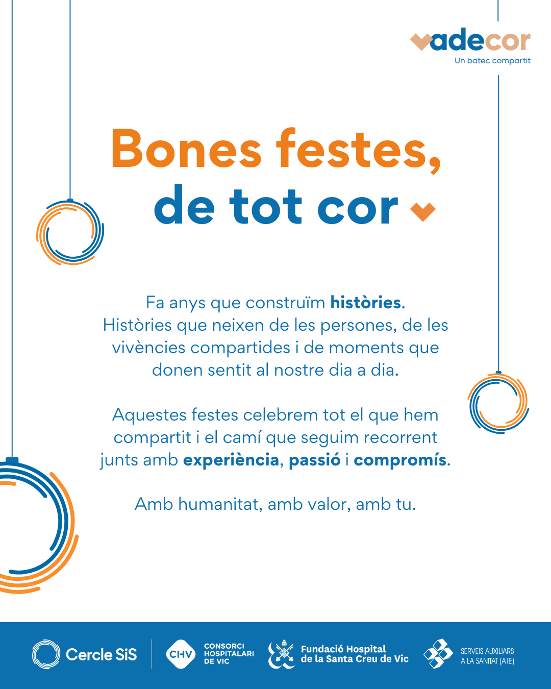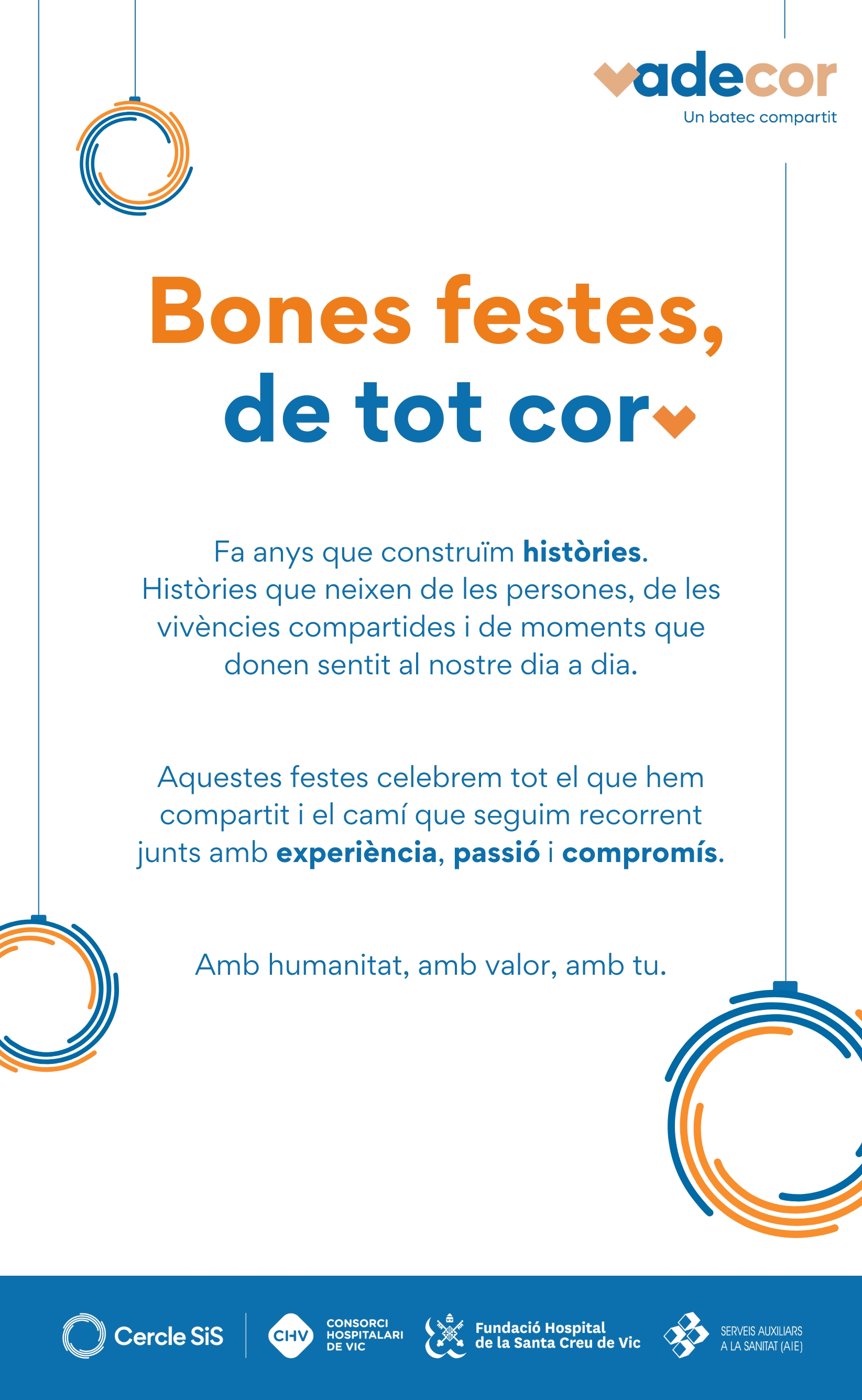 Aquestes festes celebrem tot el que hem compartit i el camí que seguim recorrent junts: la dedicació de cada professional i la confiança de totes les persones que cuidem i acompanyem. Junts continuem construint un model d'atenció integrat, centrat en les persones i arrelat al territori.