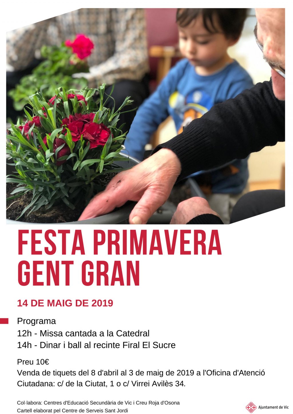 Aprofitant la gran sinergia entre el centre de gent gran i l'Espai Familiar Municipal El Remei, durant aquests últims mesos s'han realitzat diverses activitats conjuntes per a l'inici de la primavera i s'ha escollit una imatge il·lustrativa d'aquesta integració intergeneracional per incloure-la en el disseny del cartell.