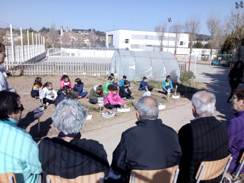 Una quinzena de nens i nenes van oferir una visita comentada a l'hort de l'escola, adreçada a 18 persones grans de l'Espai Activa't del poble. Repartits en grups, els infants van anar explicant tot el que havien plantat i quines llavors havien fet servir, totes elles provinents d'altres horts particulars de la zona. Les persones grans, com a grans coneixedors de l'horticultura, van poder participar i ajudar als infants a resoldre tots els dubtes sobre el conrreu de verdures i hortalisses.